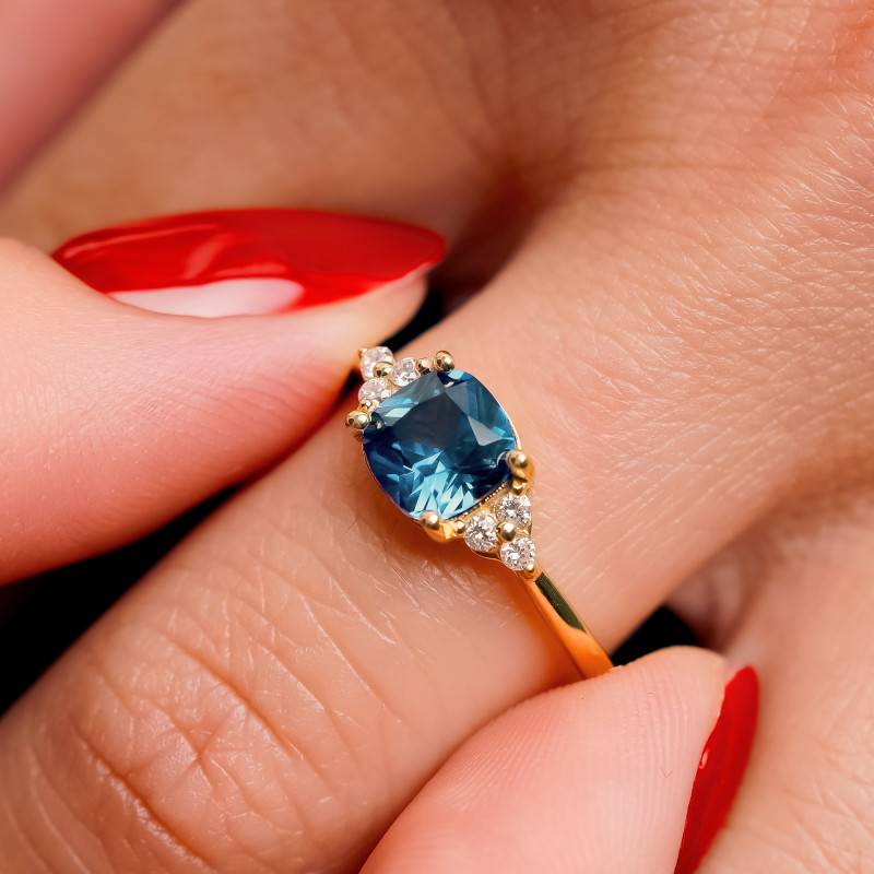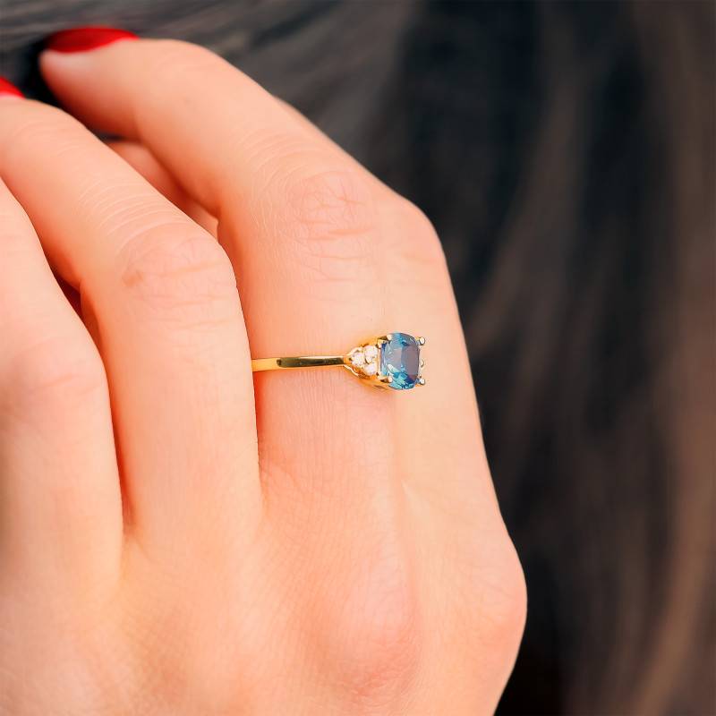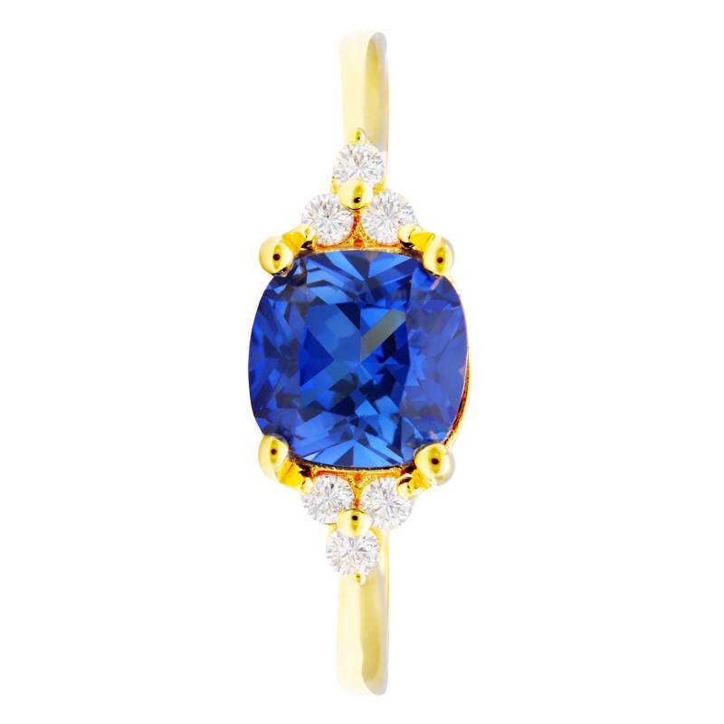 La Bague en Or Jaune 375 avec Saphir de Synthèse et Diamants de Synthèse 0,10 ct met à l'honneur l'or jaune 375/1000 (9K) et la beauté intemporelle des pierres. Son saphir de synthèse bleu est entouré de six diamants de synthèse blancs, offrant une touche de brillance et d'équilibre. D'une largeur de 1,40 mm et d'une épaisseur de 0,80 mm, cette bague légère de 1,07 g se distingue par sa finition polie et brillante.