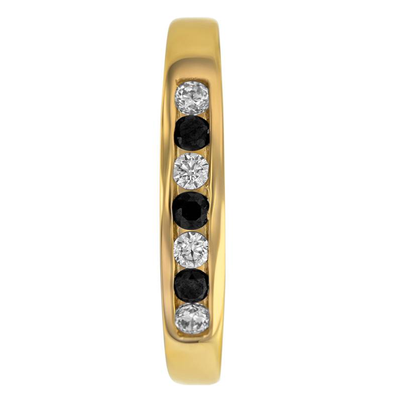 Ce modèle de Bague en Or jaune, dispose d'une structure sobre et raffinée. Ce bijou conçu en or jaune 375/1000 (9K) arbore un pavé de pierres en oxyde de zirconium de couleur blanche et noire.