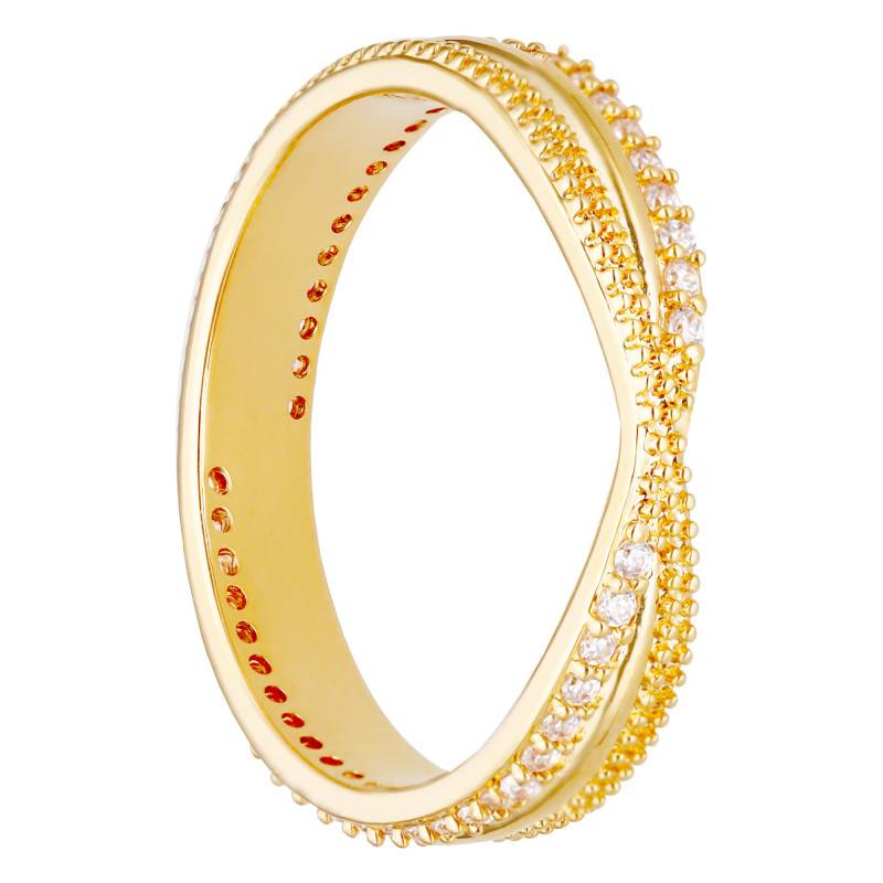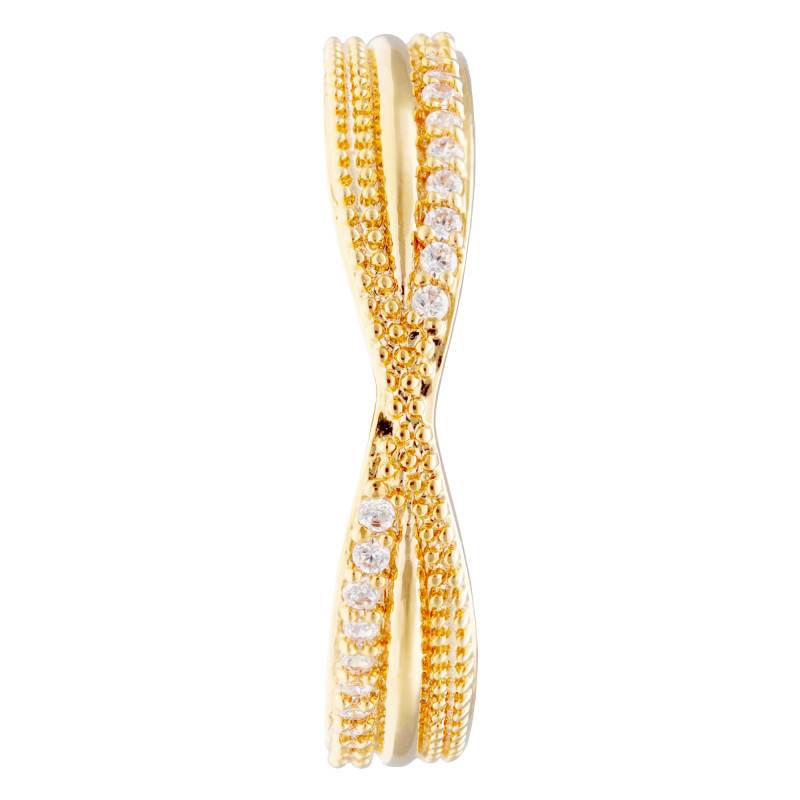 Découvrez la délicatesse de la Bague Entrelacée Perlée en Plaqué Or Jaune 750 & Oxydes de Zirconium. Ce bijou précieux, destiné aux femmes, arbore une subtile couleur jaune qui évoque les rayons dorés d'un soleil couchant. Son plaqué or 750/1000 (18K) enveloppe le doigt avec une féminité éblouissante. La texture perlée offre un toucher unique, tandis que le scintillement des oxydes de zirconium, sertis avec précision en serti à grains, habille élégamment chaque mouvement. Ses dimensions sont de 1,70 mm d'épaisseur en moyenne, 19,50 mm de diamètre en moyenne et son poids total moyen est de 2,15 g.