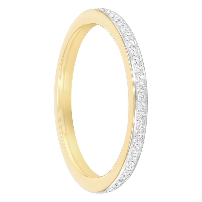 La Bague Eternité 1/2 en Argent 925 Plaqué Or Jaune & Diamants de Synthèse 0,17 ct célèbre l'alliance parfaite entre finesse et éclat. Fabriquée en argent de qualité, revêtue d'un plaquage en or jaune, elle resplendit d'une finition polie et brillante. L'éclat pur des diamants de synthèse cultivés en laboratoire, d'une couleur blanche étincelante, s'assemble avec grâce le long de la bande dans un serti à grains, pour un poids total de 0,17 ct. Avec un poids total de 2 g, cette bague s'enroule délicatement autour de votre doigt.