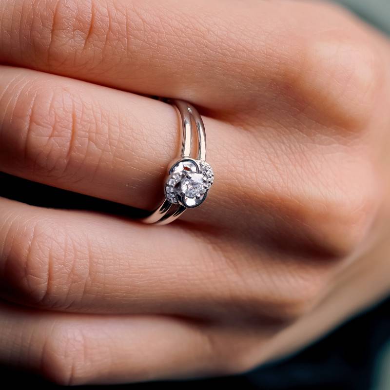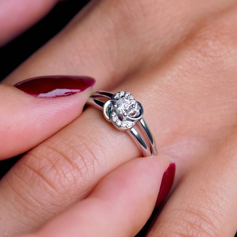 Bague Fleur en Or Blanc 750 & Diamants 0,22 ct
