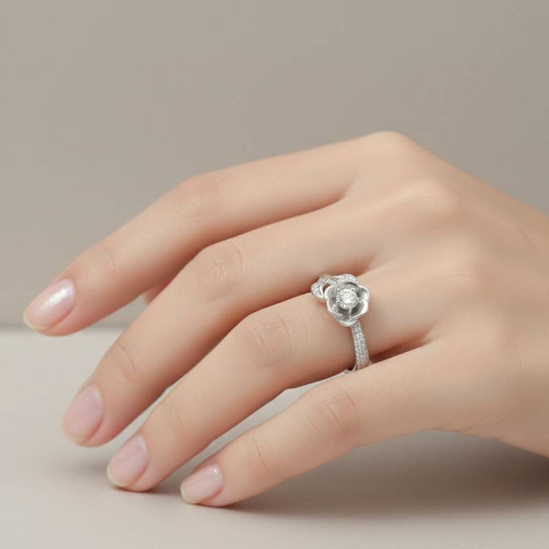 Cette Bague Fleur et ses Feuilles en Argent 925 Rhodié & Oxydes de Zirconium est une merveille de délicatesse. Fabriquée en Argent massif 925/1000 et plaqué rhodium, elle capte la lumière d'une manière inégalée, grâce à sa finition polie et brillante. Les oxydes de zirconium se dispersent comme des gouttes de rosée, rehaussant la beauté de cette oeuvre florale. Avec une largeur de 2,00 mm et un poids total de 2,60 g, elle s'enroule subtilement autour de votre doigt, une parure qui promet d'illuminer chaque geste. 39 pierres blanches sont serties à griffes, racontant l'histoire d'un jardin éternel.