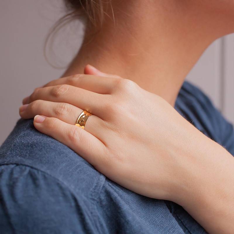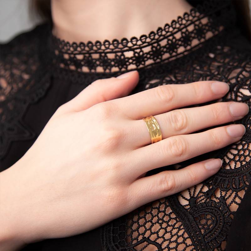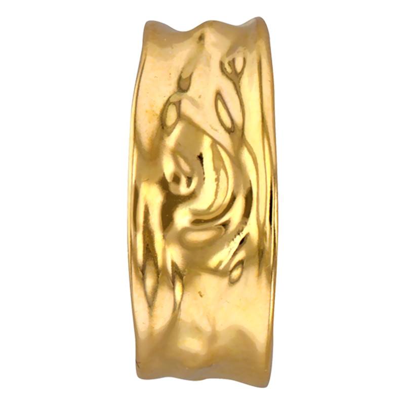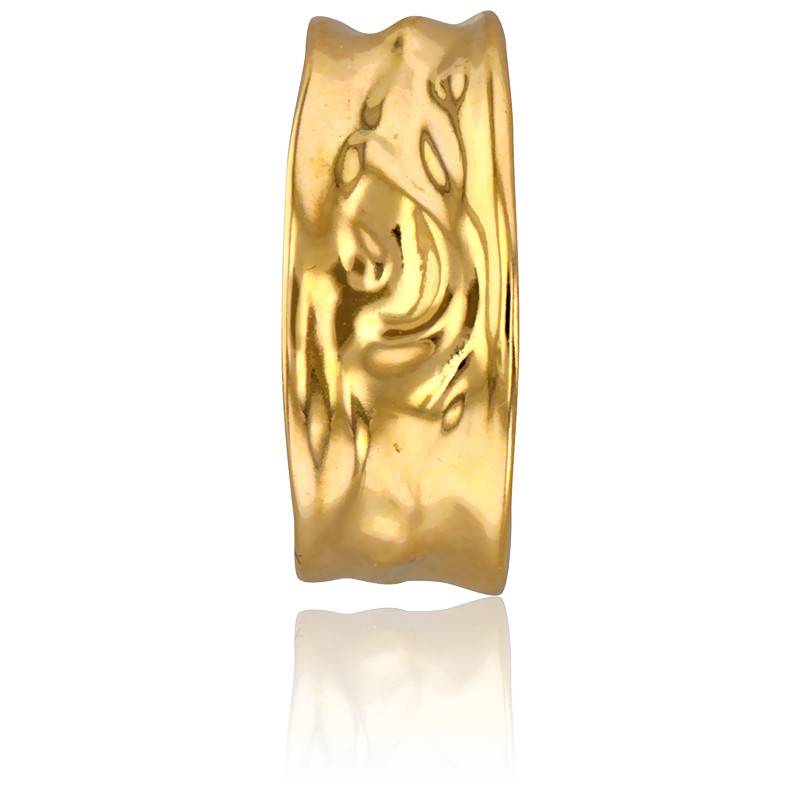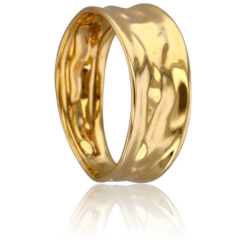 Nous sommes heureux de vous dévoiler cette charmante création qui va vous plaire à coup sûr ! Cette bague très fashion est réalisée entièrement en or jaune 375/1000 (9K). Elle vous dévoile un anneau qui a été travaillé afin qu'un effet froissé soit révélé. L'anneau a une largeur de 7 mm pour une épaisseur de 0,50 mm. Enfin, comptez un poids d'or moyen pour cette bague de 1,25 gramme.