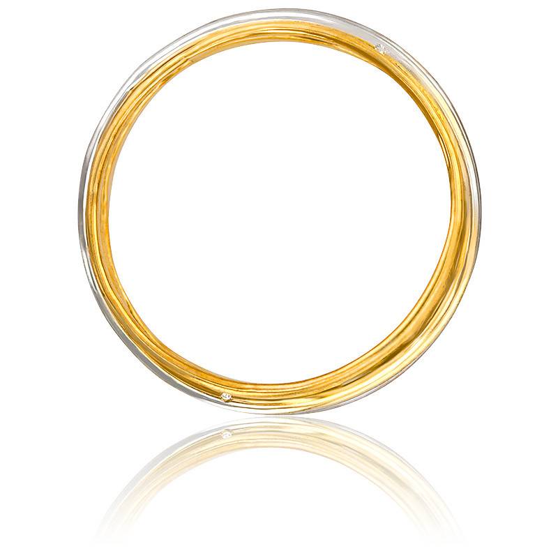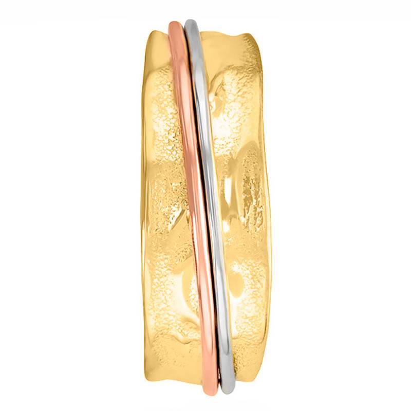 La bague est en Or jaune 375/1000 (9K) et 2 fils d'or blanc et rose y sont mêlés son diamètre est de 11mm. Son poids d'Or moyen est de 2,65g.