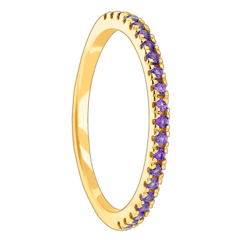 Laissez-vous transporter par l'univers singulier et unique des créations Aurora. Comme cette élégante bague réalisée en or jaune 375/1000 (9K). Elle dispose d'une hauteur de 1,65 mm et d'une épaisseur de 1,53 mm. Elle sera très agréable porté puisqu'elle pèse 1,30 gramme. Enfin, elle est sertie de 21 petites pierres fines, et semi-précieuses sur la moitié de la bague forgée en or jaune 375/1000 (9K). Les pierres présentes ici sont des améthystes roses.
