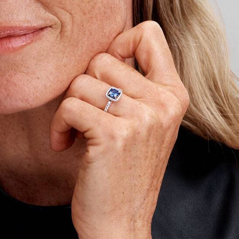 Au cœur de la bague halo bleu carré scintillant, un cristal synthétique taille coussin, entouré d'un halo étincelant, capte la lumière sous tous les angles. Confectionnée en argent 925/1000e, cette création allie un design intemporel à une finition soignée. Avec des dimensions de 8,6 mm de hauteur, 8,6 mm de largeur et 5,2 mm d'épaisseur, cette bague s'impose comme un bijou d'exception, parfait pour une soirée ou une touche glamour au quotidien.