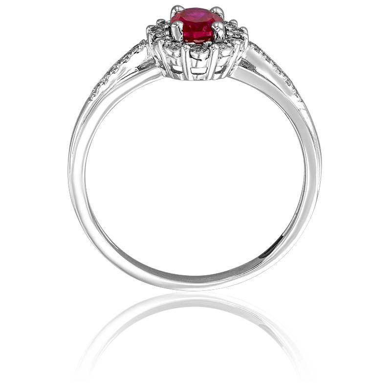 Bague marguerite très féminine en or blanc 750/1000 (18K) à découvrir de toute urgence ! Composée d'un rubis de 0,62 carat, taillé ovale en serti griffes à bouts ronds et d'une largeur de 6 mm, elle est raffinée et travaillée.