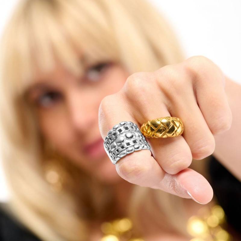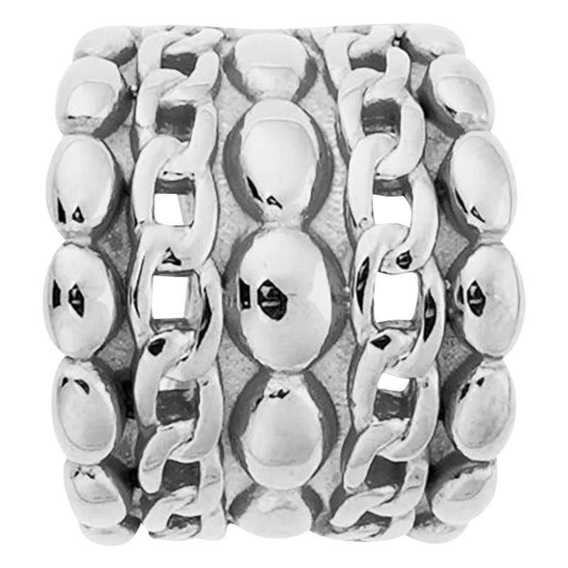 Découvrez la charmante bague Hellenis fabriquée en acier inoxydable avec un plaquage argenté de 0,05 micron. Brillante, elle est relevée par une finition polie et présente une surface mise en avant par différents motifs pour plus élégance. Entièrement réalisée à la main, cette bague affiche 2 cm de hauteur et vous est proposée en deux tours de doigt.