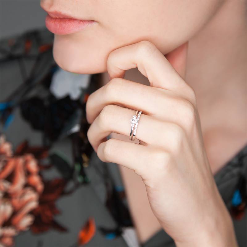 A la recherche d'une bague originale et moderne pour marquer le coup ? Craquez pour cette somptueuse création en or blanc 750/1000 (18K) remplis de charme. Elle se compose d'un corps de bague qui se sépare en deux anneaux pour un design unique. Chaque anneau mesure 1.40 mm de largeur pour 1.50 mm d'épaisseur et est serti de diamants blancs. Un anneau est agrémenté de 15 diamants de couleur GH et de pureté SI. Le second anneau est serti de 3 diamants pour un effet solitaire de dimensions 4 mm. Les pierres, d'un poids de 0.38 carat, s'imposeront avec finesse et raffinement sur la main de la personne qui portera la bague. Enfin, elle possède un poids d'or moyen de 3.51 grammes.