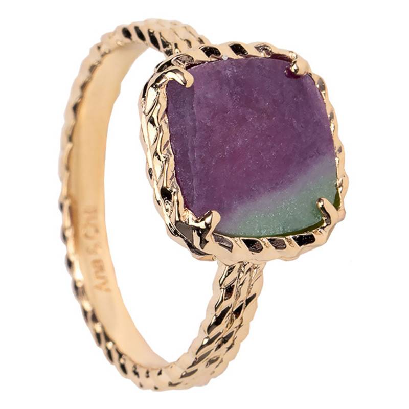 Succombez à la bague Kiara Rubis Zoïsite créée par la marque Ana et Cha. Faite à partir d'or recyclé à 90%, cette bague en plaqué or 750/1000 (18K) 5 microns a une finition brillante. Le mélange de deux pierres naturelles, la zoïsite et le rubis cristallisé, est unique et donne à cette bague une combinaison de couleurs vibrantes pour habiller vos tenues. Elle peut être portée seule ou avec d'autres bagues Ana et Cha comme la bague Kiara Amazonite, pour un look tendance. La largeur du corps de la bague est de 3 mm. Vous pouvez retrouver à l'intérieur de l'anneau le nom de la maison Ana & Cha gravé.