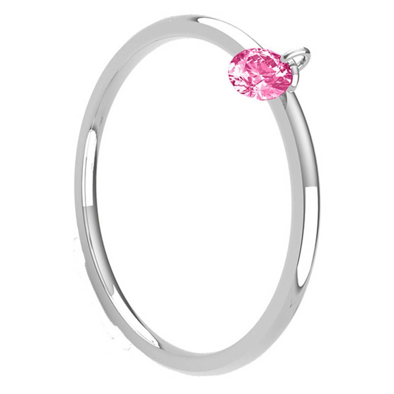 Cette pièce est composée d'or blanc 750, ce qui désigne un or 750/1000 (18K), son poids moyen d'or est de 1,10g. Cette pièce a le corps lisse afin d'assurer un maximum de confort à votre doigt. Sur le dessus on retrouve un saphir rose pendant percé de 0,30 ct de forme ronde.