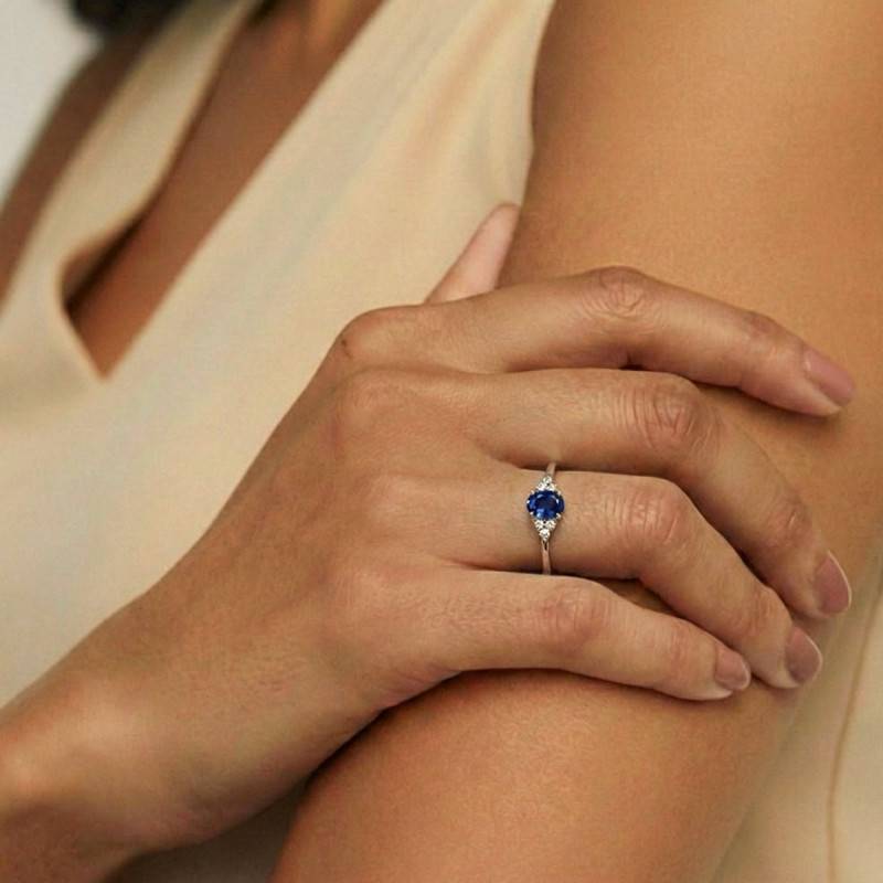 De finition polie, cette belle bague est entièrement faite à partir d'or blanc 375/1000 (9K). Son centre abrite un splendide saphir ovale de 0,6 ct, accordant à la bague une touche de charme. Elle mesure 6 mm de longueur, 4,5 mm de largeur, et est mise en avant par 6 diamants blancsde 0,05 ct au total, taillés en rond, et de pureté GH-P2.Ces derniers arborent un éclat et une brillance qui habilleront votre main au quotidien. Avec des dimensions de 4,90 mm de hauteur, et 4,30 mm d'épaisseur, cette bague, d'un poids en or moyen de 1.50 gr, se prêtera à toutes les occasions. C'est un modèle parfait pour les femmes en quête de bijoux raffinées, qui cherchent à accentuer l'élégance de leur apparence et à se démarquer.