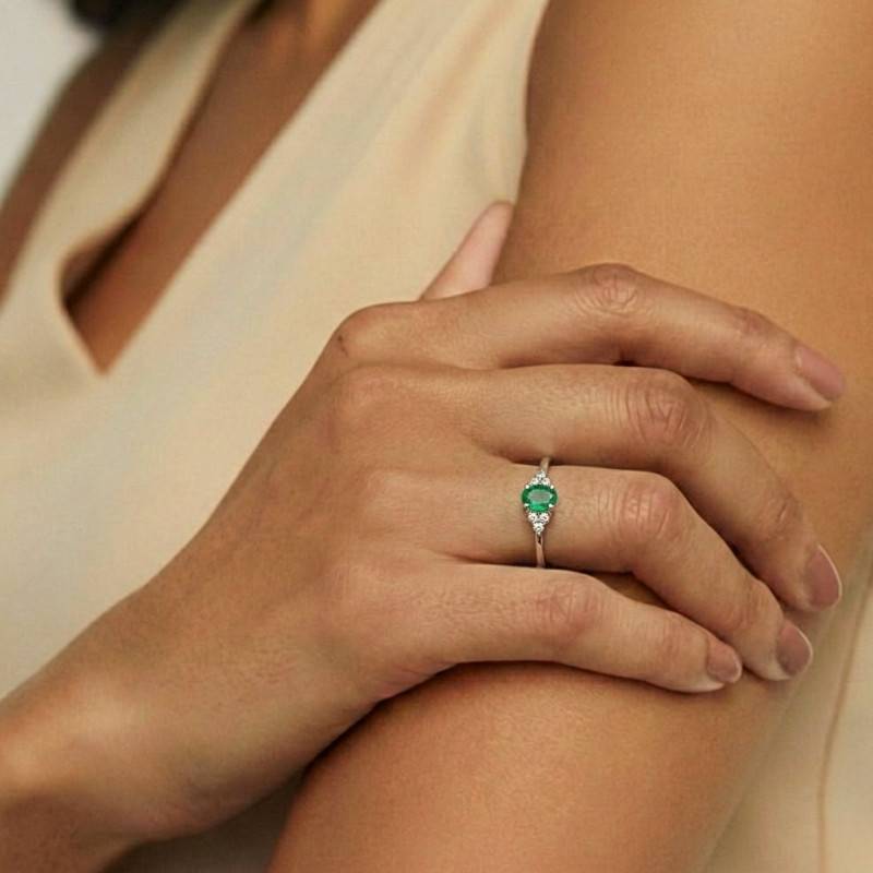 Parfaite pour enjoliver les moments forts de votre vie, cette sublime bague est réalisée en or blanc 750/1000 (18K). Son design est rehaussé par sa finition brillante, lui conférant une allure éclatante. Au centre de ce bijou, se trouve une émeraude ovale verte de 0,42 ct. Cette pierre de 3,50 mm de longueur, est symbole de régénération et de cohésion avec votre environnement. De part et d'autre de celle-ci, sont placés des 6 diamants blancs pastillés pour un total de 0,048 ct, taillés en forme ronde, et accentuant l'allure raffinée de ce bijou. Ceux-ci ont une couleur GH et une pureté P1. Ensemble, les diamants et l'émeraude mesure 6 mm de longueur, 4,30 mm de largeur, et 5 mm de hauteur. Cette bague, de 4,30 mm d'épaisseur, saura s'accorder facilement à tous les styles, pour leur donner une allure charmante.