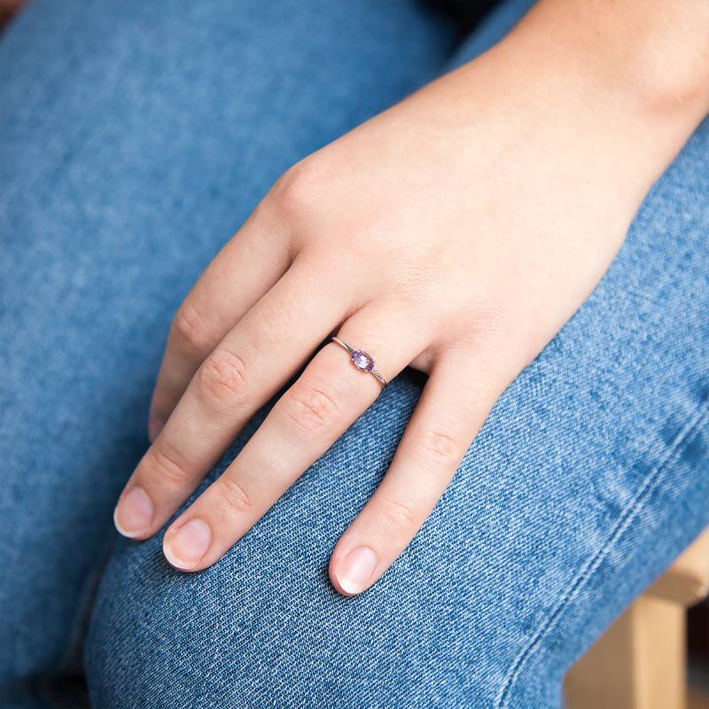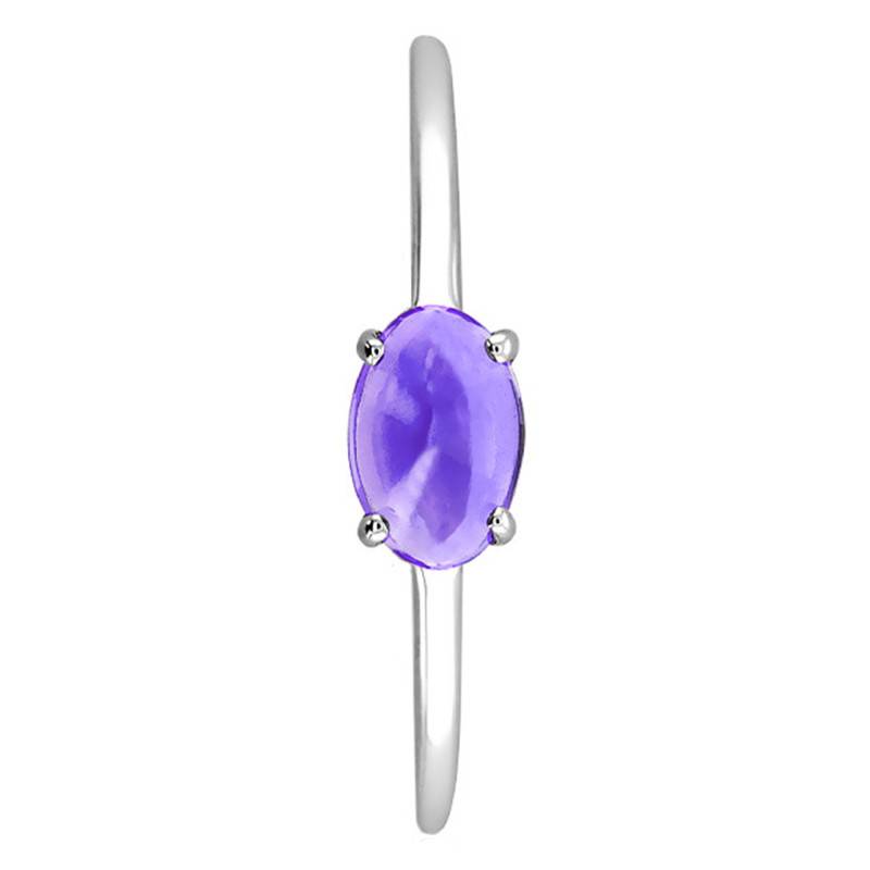 Cette sublime bague en or blanc a en son centre, une somptueuse pierre d'améthyste violette. La longueur de la pierre est de 4 mm et elle dispose d'une largeur de 3 mm. Cette améthyste a un poids de 0,65 carat. Elle est serti à griffes pour plus de sécurité. Ce bijou saura apporter un réel éclat à votre main !