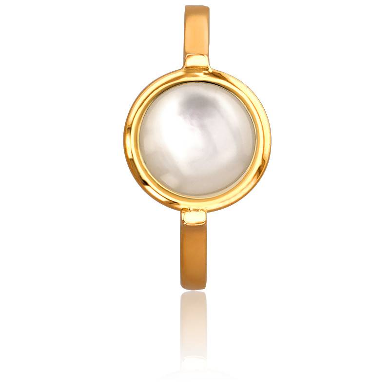 Cette bague or jaune 750/1000 (18K) est ornée d'une ravissante nacre blanche bombée de 8 mm de diamètre pour un poids de 1,70 ct. Cette pierre est entourée par de l'or jaune sur 1,70 mm de diamètre. Le poids d'or moyen est de 1,85 gramme.