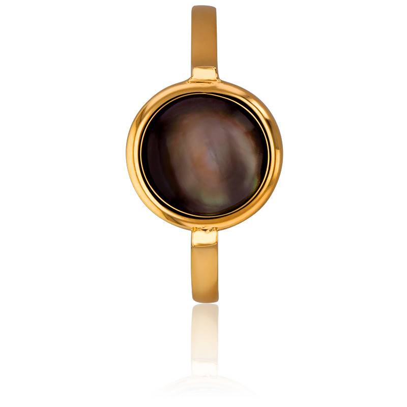 Succombez au charme de cette jolie bague or jaune 750/1000 (18K). Elle est ornée d'une ravissante nacre grise bombée de 8 mm de diamètre pour un poids de 1,70 ct. Cette pierre est entourée par de l'or jaune sur 1,70 mm de diamètre.