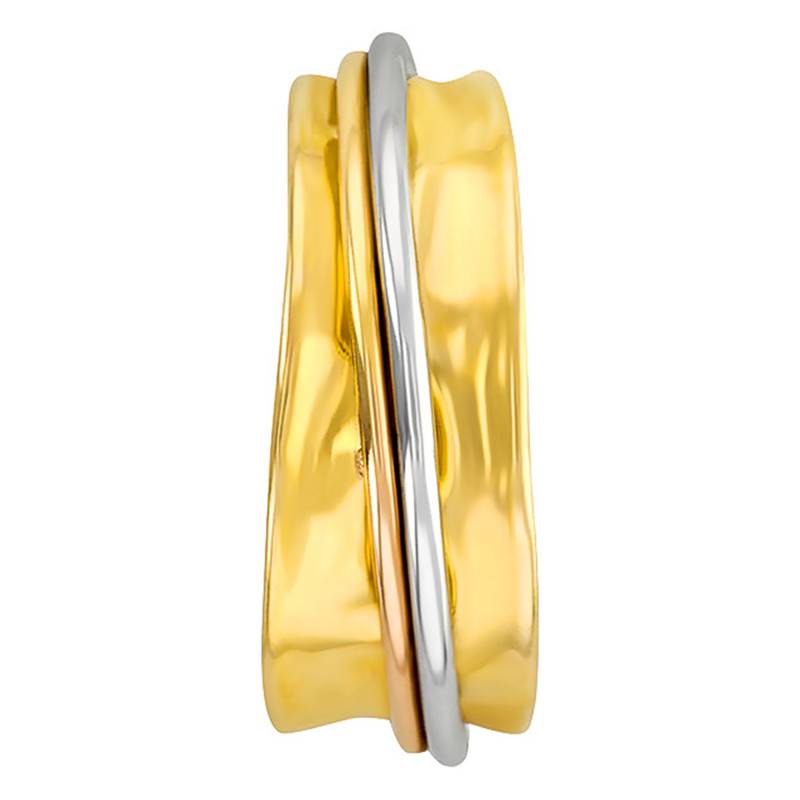 La bague est en Or jaune 375/1000 (9K) et 2 fils d'or blanc et rose y sont mêlés. Son poids d'Or moyen est de 2,20g.