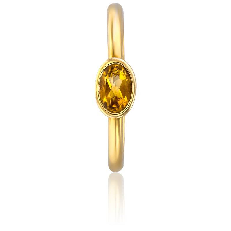 La maison Vandona et ses artisans mettent toute leur expertise au service de cette magnifique bague en or jaune 750/1000 (18K). Surmontée d'une citrine ovale sertie clos, elle est fin et délicate pour habiller votre main à la perfection. La pierre a une largeur de 6 mm, une hauteur de 5 mm pour une épaisseur de 3 mm. Le fil rond fait 2 mm d'épaisseur et le poids d'or moyen est quant à lui de 1,15 gramme.