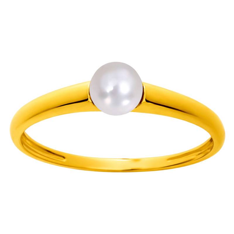 Découvrez cette délicate bague en or jaune 750/1000 (18K). De type jonc, elle est surmontée d'une perle de culture d'eau douce d'un diamètre de 4 mm. La perle d'un blanc lumineux affinera votre doigt et apportera de la lumière à votre main. Le poids d'or moyen de cette magnifique bague est quant à lui de 1,75 gramme.