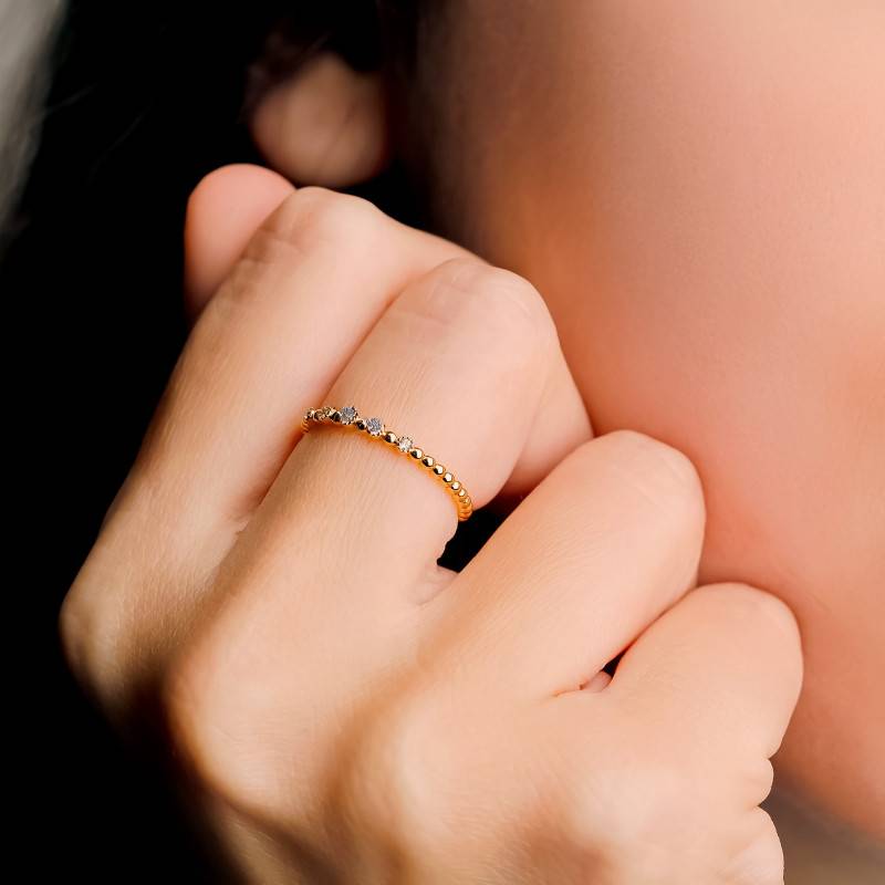 Découvrez la Bague Perlée & Diamants Ronds 0,03ct en Or Jaune 375, un modèle discret et lumineux. Conçue en Or Jaune 375/1000 (9K), elle présente une finition polie qui met en valeur ses lignes fines. Avec une épaisseur de 0,90 mm et un poids léger de 0,90 g, elle se porte avec confort et naturel. Ses cinq diamants blancs, totalisant 0,03ct, apportent une touche d'éclat subtil à votre main.