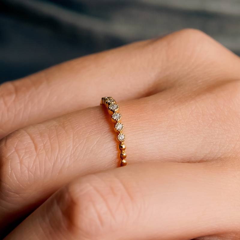 Découvrez la Bague Perlée & Diamants Ronds 0,09ct en Or Jaune 375, un modèle alliant sobriété et éclat. Réalisée en or jaune 375/1000, elle offre une finition polie et satinée qui met en valeur ses lignes délicates. Son sertissage de 7 diamants blancs, pour un total de 0,09 carat, apporte une touche lumineuse discrète et raffinée. Avec une épaisseur de 1,20 mm et un poids de 1,34 g, elle se porte avec confort au quotidien. Une garantie de 2 ans accompagne ce bijou, gage de sérénité.