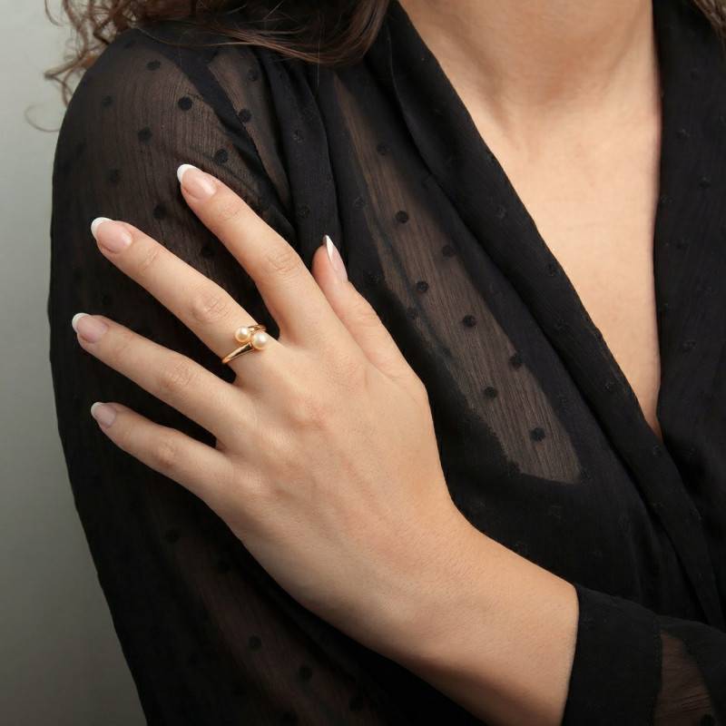 Bague Toi et Moi en Or Jaune 750 & Perles de Culture Rose