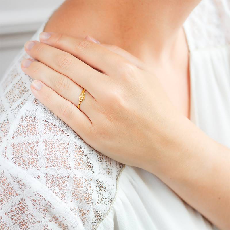 D'une remarquable finesse, cette bague en or jaune 375/1000 (9K) de la maison Maison Ballet by Scarlett intègre un magnifique motif central en forme de délicate plume. D'une largeur de 12 millimètres pour une hauteur de 4 millimètres, ette petite plume se place sur un anneau affichant une épaisseur de 1 millimètre. Le poids d'or moyen affiché par ce bijou est de 0,70 gramme et un pochon en organza de couleur rose accompagnera votre bague.