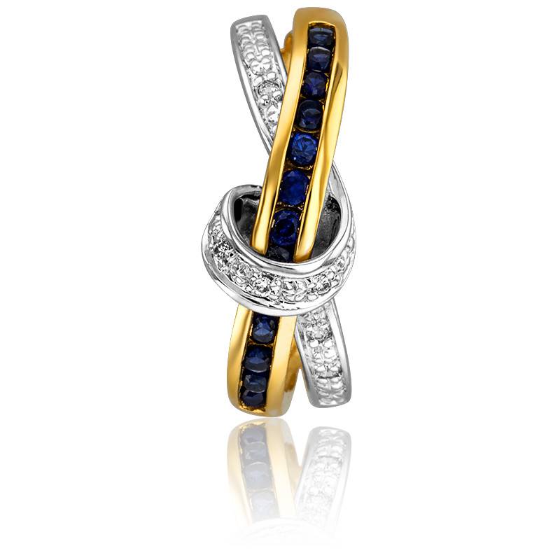 Bague 2 ors élégante et raffinée composée de deux fils principaux dont l'un est en or jaune pavé de saphirs de 0,416 carat, taille brillant et sertis rail à découvrir de toute urgence ! Le second est en or blanc pavé de diamants tailles brillants et sertis grains, agrémenté d'un relief perlé, donnant ainsi de la luminosité à la matière.