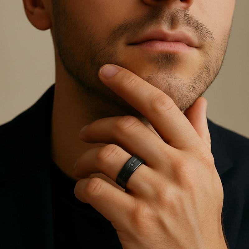 La Bague Rainurée en Acier Noir & Oxyde de Zirconium Noir reflète un style affirmé et raffiné. Réalisée en Acier inoxydable avec une finition polie et brillante, elle est ornée d'un oxyde de zirconium noir serti au centre. Avec un poids moyen de 9,40 g et un diamètre moyen de 20 mm, cette bague allie confort et robustesse pour un usage quotidien.