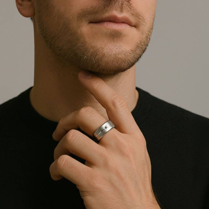La Bague Rainurée en Acier & Oxyde de Zirconium Noir incarne la sophistication et la force. Réalisée en acier inoxydable, elle séduit par son éclat argenté et sa teinte noire profonde. Sa finition polie et brillante capte la lumière avec intensité, tandis que l'oxyde de zirconium noir, serti à griffes, trône au centre d'une rainure élégante. Avec un poids moyen de 10 g et un diamètre moyen de 20 mm, cette bague allie robustesse et délicatesse pour un port confortable et affirmé.
