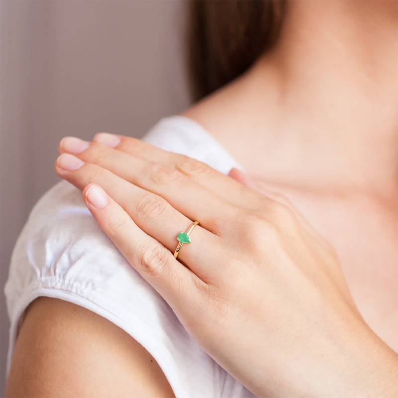 Succombez à la bague Silene Or Jaune 750, Emeraude. Cette magnifique bague en or jaune 750/1000 (18K) est composée d'une émeraude solitaire sertie trois griffes de 0,10 carat et de forme poire. Le fil de la bague fait 1,80 mm de largeur et 1 mm d'épaisseur. La tête de bague a une largeur de 5 mm pour une hauteur de 7 mm. Avec un poids moyen de 1,10 gramme d'or, cette bague émeraude se distingue par sa légèreté, offrant un confort optimal pour un port au quotidien.