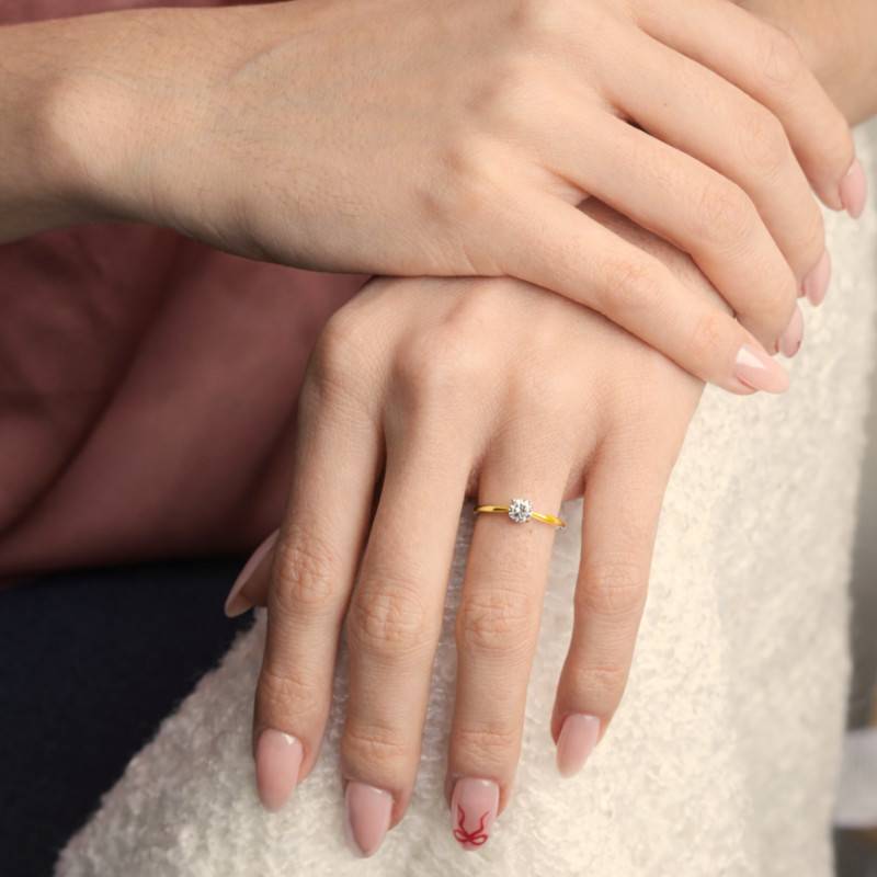 Laissez-vous envoûter par cette Bague Solitaire avec un Diamant de Synthèse Cultivé en Laboratoire de 0,30ct en Or Jaune 375 ou 750, une œuvre d'art subtile de Alliantine, pensée pour sublimer la grâce naturelle de celle qui la porte. Façonnée en Or Jaune finement poli, cette bague aux lignes épurées danse de lumière en lumière. Son anneau, d'une largeur de 0,70 mm et d'une épaisseur de 0,60 mm. La bague est d'un poids de 1,00g pour celle en 375 et 1,40g pour celle en 750. Le diamant de synthèse, blanc comme neige éternelle, brille d'un feu inaltérable grâce à son serti à griffes. Avec une pureté VVS2 et une couleur F, chaque détail de cette pièce incarne l'harmonie parfaite entre simplicité et sophistication.