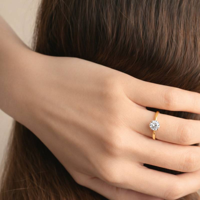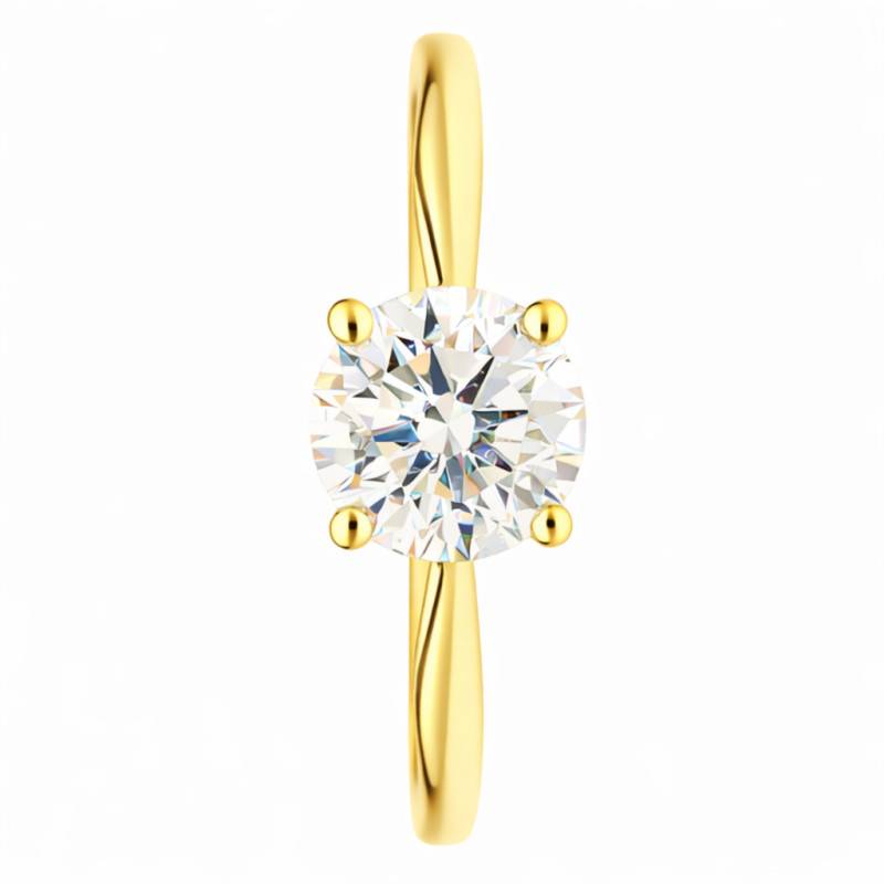 La Bague Solitaire avec un Diamant de Synthèse Cultivé en Laboratoire de 1,00ct Certifié IGI en Or Jaune 375 ou 750 est un chef-d'œuvre de délicatesse et d'éclat. Arborant un diamant blanc d'une pureté fascinante VVS2, cette pièce sublime chaque mouvement d'une lueur éclatante. Confectionnée en or jaune disponible en qualité 375/1000 (9K) ou 750/1000 (18K), elle reflète un raffinement absolu avec sa finition polie et brillante. Son serti à griffes assure élégance et sécurité à la pierre centrale. La bague est d'un poids de 1,7g pour celle en 375 et 2,3g pour celle en 750.