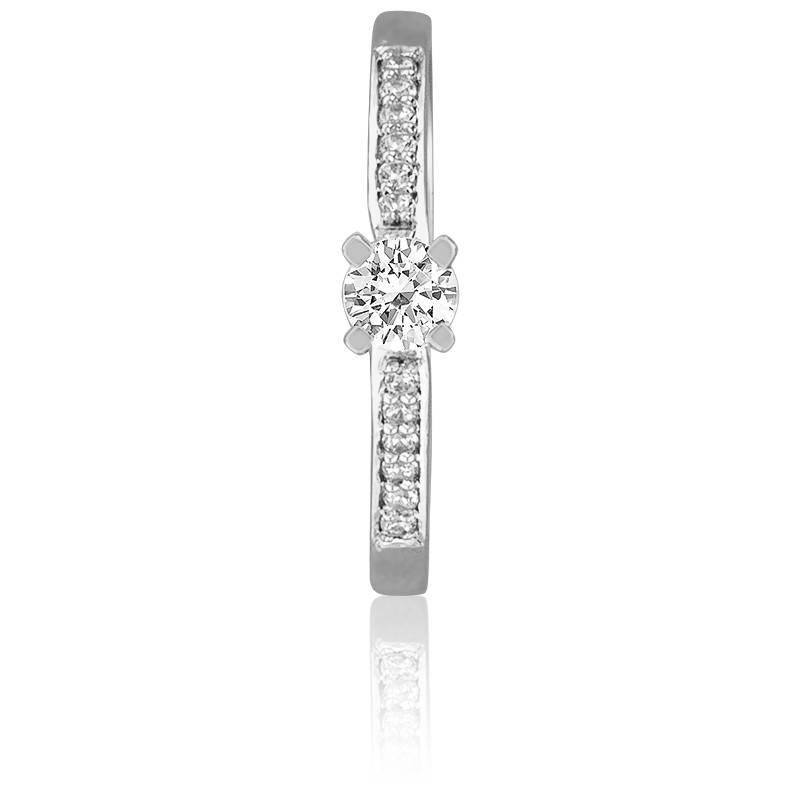 Celle-ci est composée, en tête de bague, d'un magnifique diamant de 0,19 carat, taille brillant et monté sur quatre griffes.