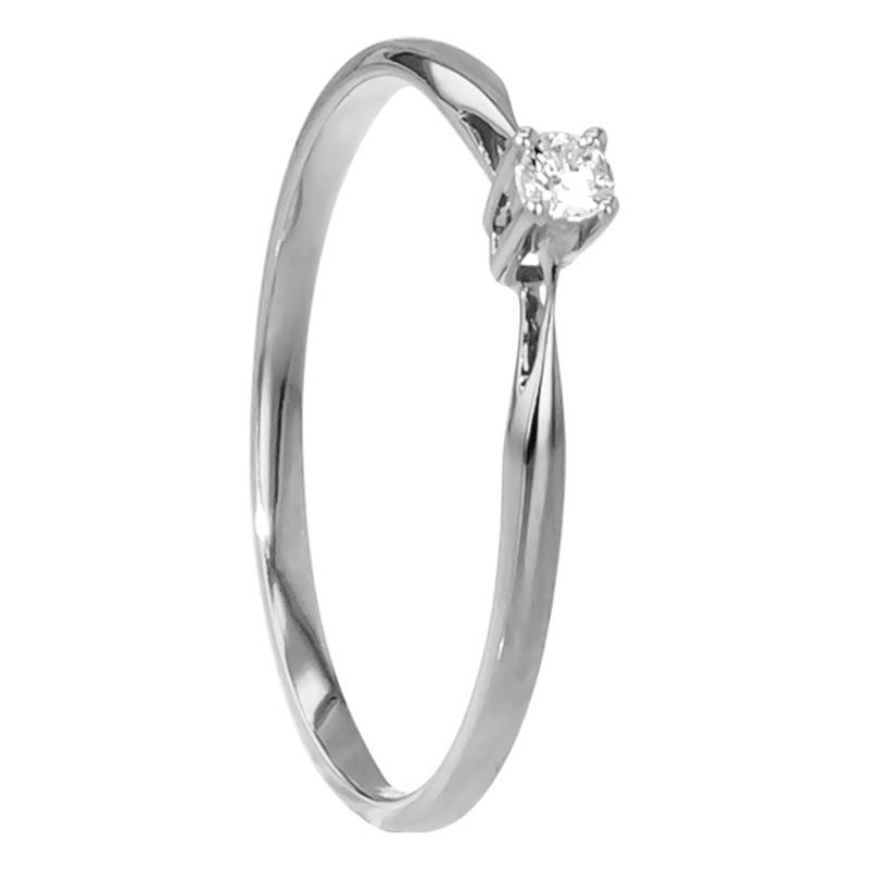 Cette sublime bague solitaire en or blanc 375/1000 (9K) rhodié sera le témoin parfait de votre amour. Surmontée d'un diamant taille brillant de 0,04 carat, elle fera de votre demande la plus belle qui soit. Cette bague est dotée d'un chaton, serti 4 griffes, ajouré sur le dessous qui révèle toute la beauté de ce diamant de couleur G et de pureté SI1. Le poids d'or de ce bijou est de 1,15 gramme.