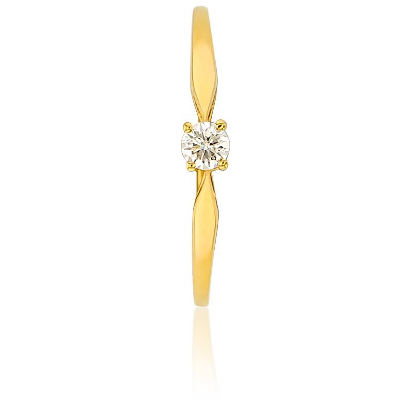 Il vous sera difficile de résister au charme de ce magnifique solitaire en or jaune 750/1000 (18K) et son diamant taille brillant de 0,14 carat.