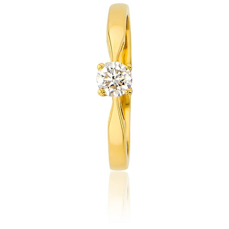 Cette bague solitaire en or jaune 750/1000 (18K) représente le rêve de toute femme notamment grâce à son diamant taille brillant de 0,30 carat.