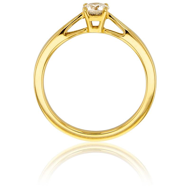 Succombez au charme de cette bague solitaire en or jaune 750/1000 (18K) et son diamant taille brillant de 0,35 carat.
