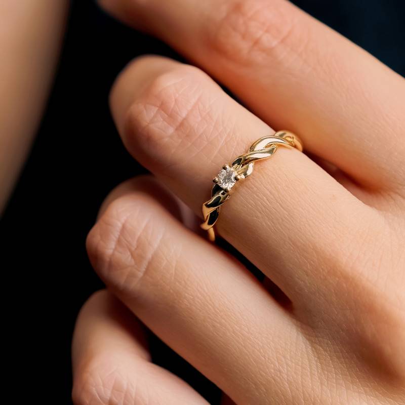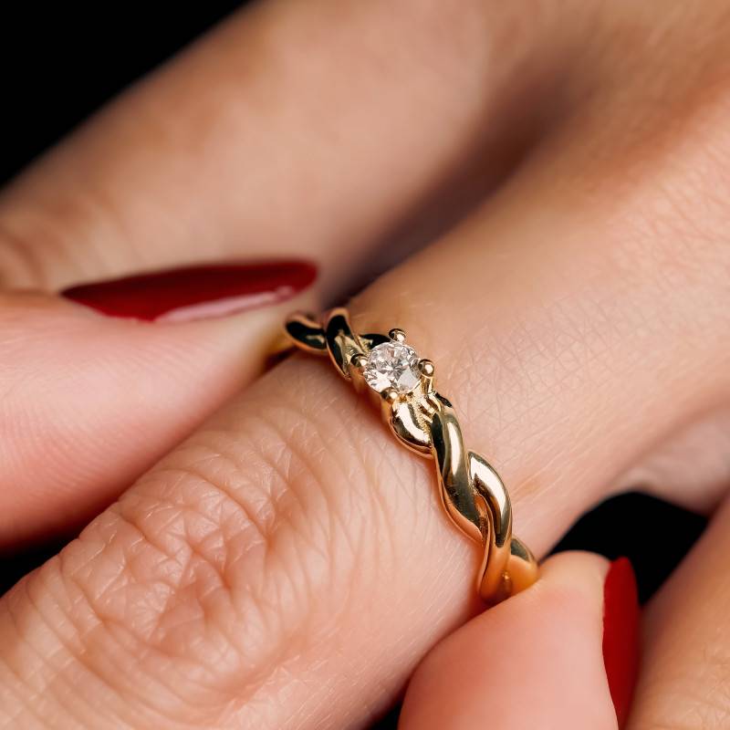 Ciselée dans le noble argent et sublimée par un plaquage or, la bague solitaire torsadée se fait ode à l'élégance. Son anneau en torsade, d'un jaune éclatant, enlace un diamant de synthèse de 0,10 ct, serti avec raffinement en serti à griffes. Le tout pèse délicatement 2 g, offrant un accessoire subtile à chaque portée.
