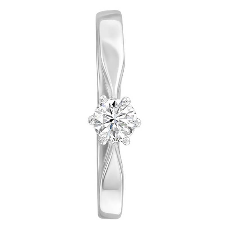Ocarat vous propose cette très jolie bague solitaire en or blanc rhodié 750/1000 (18K) surmontée d'un diamant taille brillant de 0,30 carat.