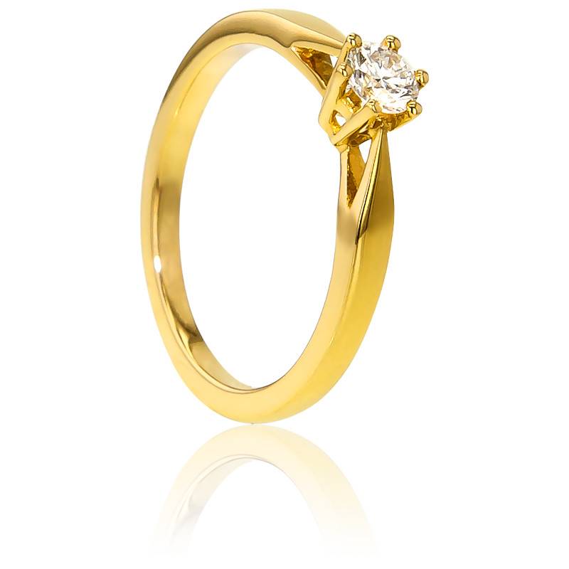Cette bague solitaire en or jaune 18 carats est surmontée d'un diamant taille brillant de 0,23 carat et viendra apporter une touche chic à vos tenues.
