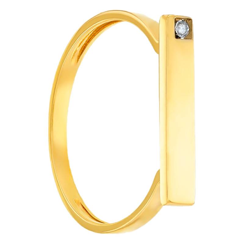 Cette bague en or jaune 750/1000 (18K) bénéficie d'une splendide couleur éclatante qui saura faire preuve de résistance au fil du temps. L'anneau, de type ruban plat, présente une largeur de 1,50 mm. Dans un style minimaliste, ce bijou est constitué d'une plaque de forme rectangulaire dont les dimensions sont 2 mm x 15 mm. Cette plaque est habillée d'un diamant taille brillant serti clos, de 0,01 carat et de qualité HP1. Il est encerclé par une partie en or blanc qui permet de rehausser son éclat. Ce bijou formera un délicat trait de lumière sur votre main et pourra vous accompagner avec finesse en toute occasion. Le poids moyen est de 1,55 gramme en prenant un tour de doigt 54 comme référence.