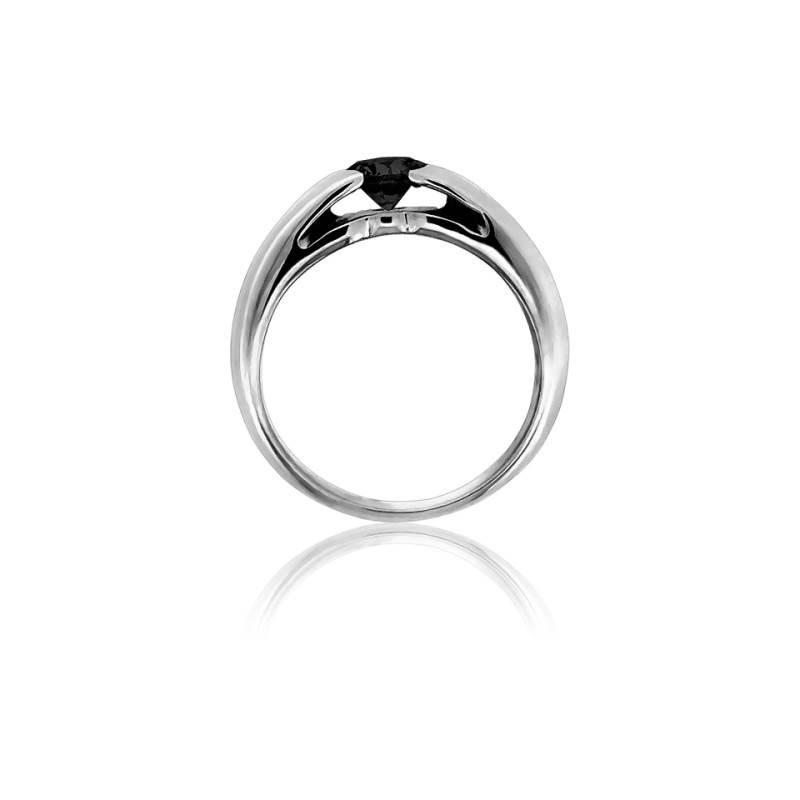 Ici, nous vous proposons de découvrir cette bague en argent rhodié 925/1000 surmontée d'un diamant noir taille brillant de 0,50 carat. Le diamant de couleur noire est serti semi-clos et le poids d'argent moyen : 7,90 grammes.