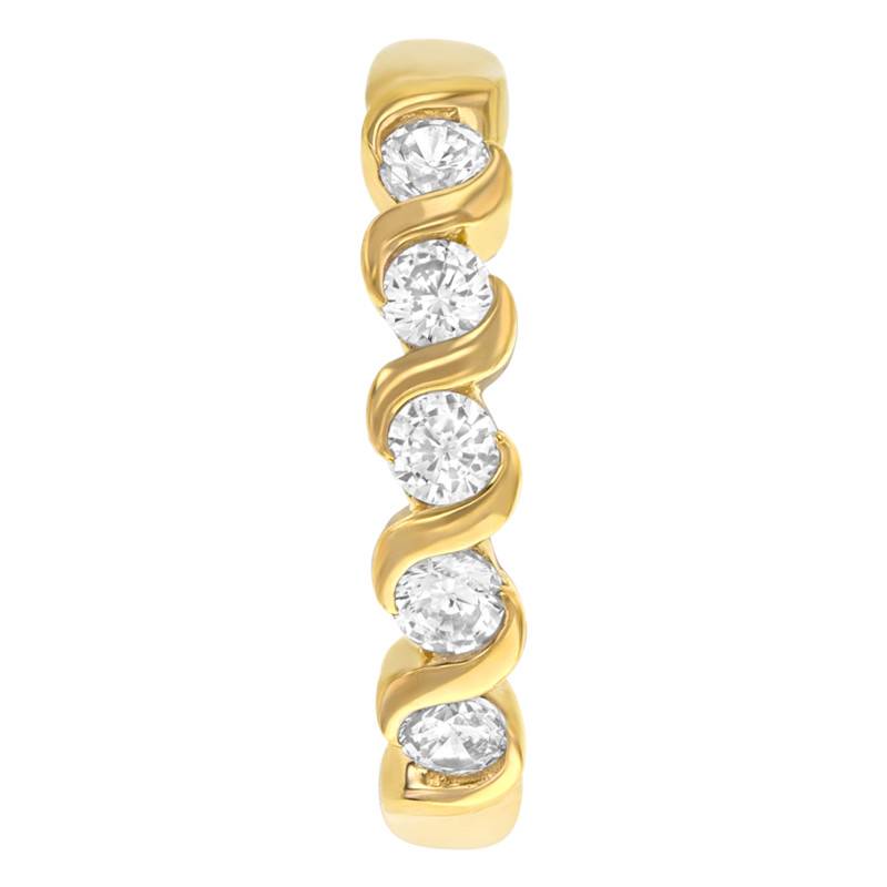 Pleine de finesse et de modernité, cette charmante bague en or jaune 375/1000 (9K) ornera élégamment votre doigt. D'un look chic et original, ce bijou magnifiquement poli révèle un motif tourbillon au centre de la monture agrémenté de pierres scintillantes en oxyde de zirconium qui vous assureront un éclat éblouissant. Elle mesure 1,19 mm d'épaisseur.