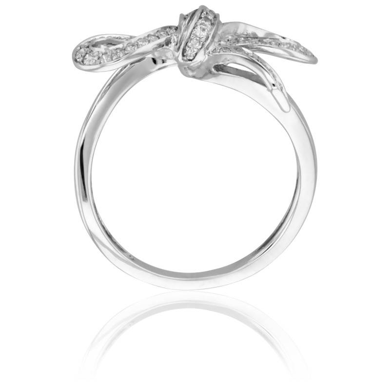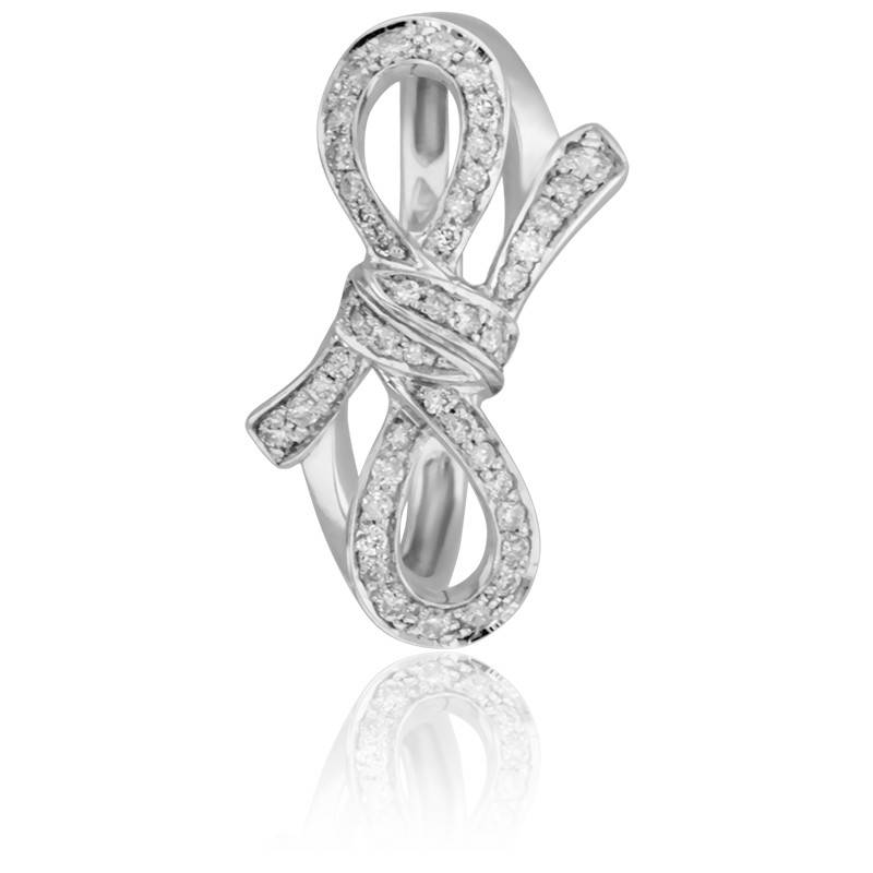 Romantique et délicate, cette sublime bague en or blanc 750/1000 (18K) apportera une touche d'élégance à vos tenues. Ce noeud stylisé est pavé de quarante-huit diamants brillants sertis à grains. Il mesure 22 mm de largeur, 12 mm de hauteur pour une épaisseur de 6 mm. Cette magnifique bague or blanc et diamants va apporter du style à votre look !