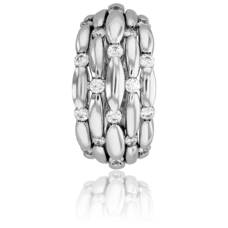 Elle possède une effet capitonné créé par des diamants qui entrecoupent chaque rangée. Les treize diamants brillants sont sertis clos, pour un poids total de 0,50 carat, une couleur G et une pureté VS2. Avec une largeur de 9 mm pour une épaisseur de 4 mm, elle s'imposera à votre doigt pour que vous puissiez vous démarquez ! Le talon de la bague a quant à lui une largeur de 4,5 mm et le poids d'or moyen est de 12,60 grammes.