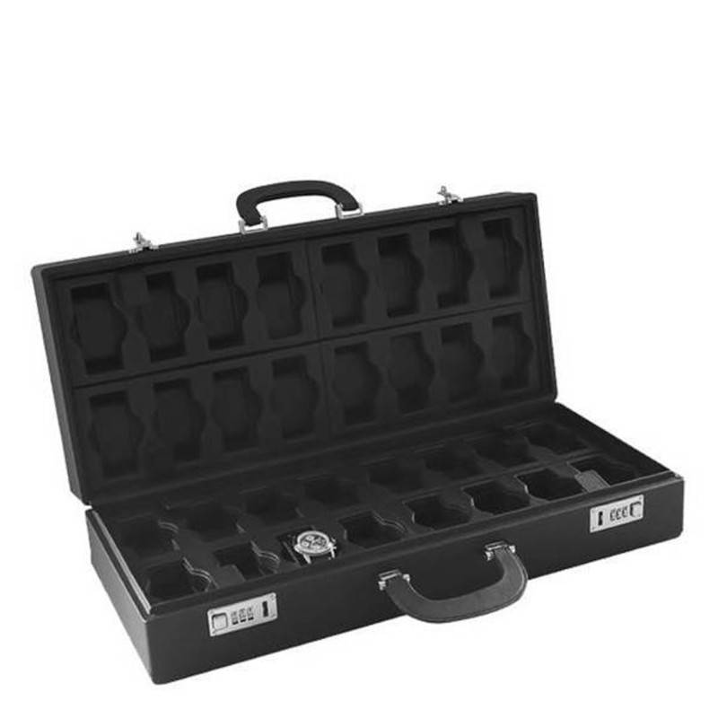 Ce modèle, de couleur noir intense, est à la fois sobre et raffiné. Son cuir de vachette assure une grande protection à vos montres. D'ailleurs, vous pourrez en mettre jusqu'à 32 à l'intérieur de ce magnifique modèle. Notez que cette boîte a été entièrement conçue en Italie. La maison a choisi des dimensions pratiques pour vous permettre d'emporter cette boîte partout avec vous sans encombre, cette dernière mesure 15 cm de hauteur, 58 cm de longueur et dispose d'une largeur de 26 cm. Enfin, sachez que pour la refermer en toute sécurité, vous trouverez deux fermoirs avec codes. Faites vous plaisir en craquant pour cette boîte à montres pratique, tendance et unique !