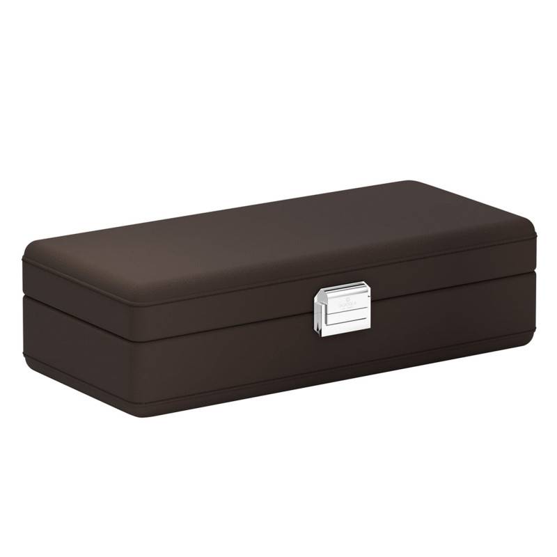 Composée de quatre compartiments avec coussin suspendu, cette montre est entièrement conçue à la main. De couleur marron, elle vous accompagnera lors de vos différents voyages avec élégance et sobriété. De plus, ce sera le cadeau parfait pour faire plaisir aux femmes comme aux hommes. Enfin, elle mesure 8,5 cm de hauteur, 30 cm de longueur et 14 cm de largeur, dimensions parfaites pour la glisser dans votre valise ou votre sac.