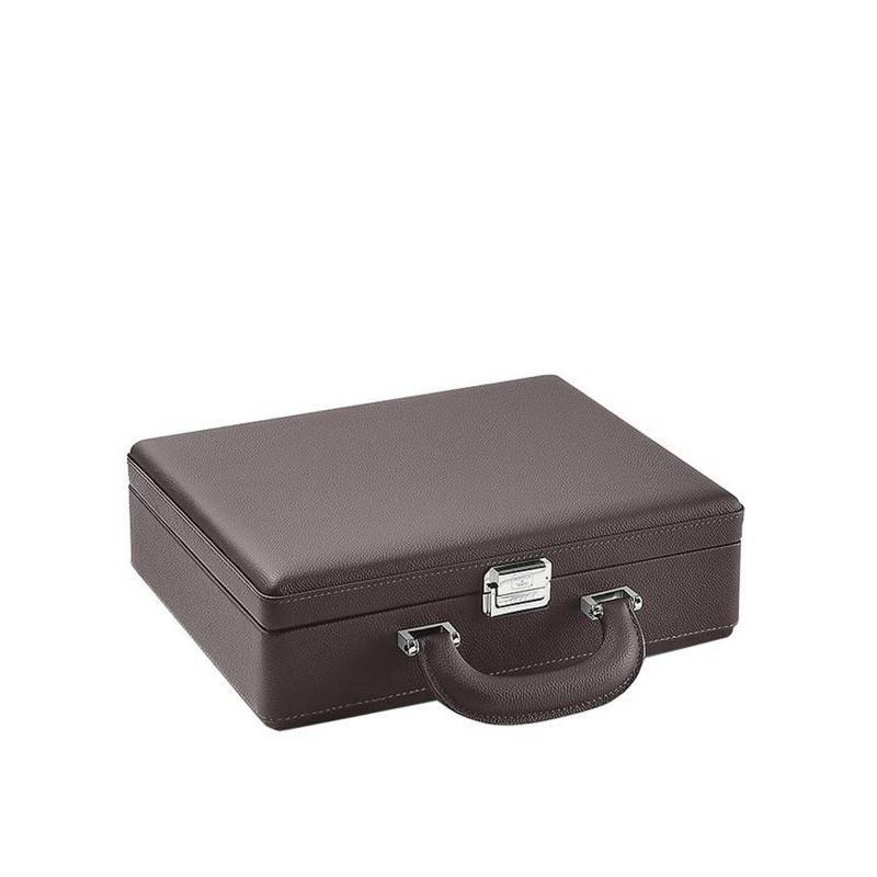 Confectionnée en cuir de vachette, cette boîte pèse seulement 1,3 kg et peut accueillir 8 montres de taille normale ainsi que des montres surdimensionnées (diamètre de l'étui, couronne incluse, 56 mm). Accompagnée d'une poignée, la boîte est facilement transportable. Concernant ses dimensions, la boîte mesure 9 cm de hauteur, 31 cm de longueur et 26 cm de largeur. Puis, elle se refermera grâce à un fermoir de couleur argentée sur lequel est inscrit le nom de la maison. Enfin, le modèle possède une garantie de 3 ans. Si vous adorez chouchouter vos montres, cette boîte est faite pour vous !