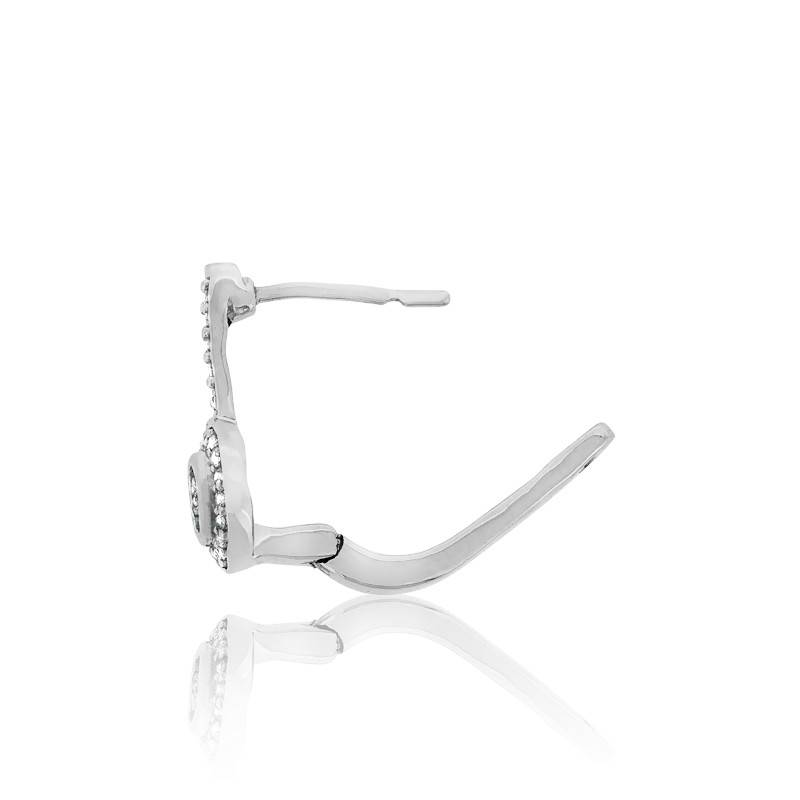 Ces élégantes boucles d'oreilles sont de type dormeuses. Elles ont été réalisées en or blanc rhodié 750/1000 (18K). Elles sont composées de 13 diamants centraux qui sont eux-mêmes entourés d'un cercle en or blanc. Au-dessus de ce cercle, un pavage de 16 diamants vient entourer les pierres centrales. Les bélières sont également pavées de 5 diamants. Les diamants de ces boucles dormeuses sont de couleur H et de pureté P1 pour un poids total de 0,24 carat. Chaque boucle a une hauteur de 13,90 mm et le motif rond en bas de la boucle a un diamètre de 6,90 mm. Comptez un poids d'or moyen de 2,92 grammes pour la paire.